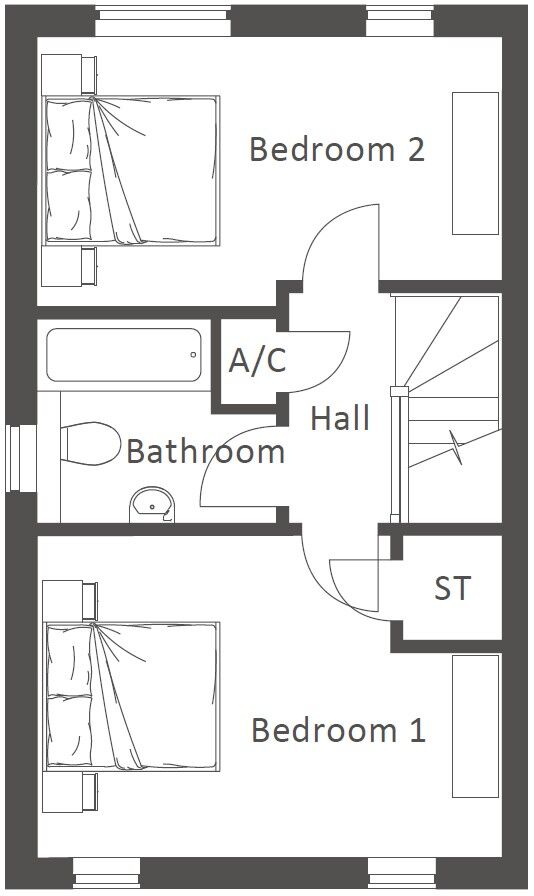 A well-designed two-bedroom home featuring a separate kitchen located at the front looking onto the driveway and front garden, and a spacious rear living/dining room with French doors to the garden. Upstairs offers two double bedrooms and a family bathroom. Includes two front parking spaces and gated side access to a private rear garden with turf and a good-sized patio.